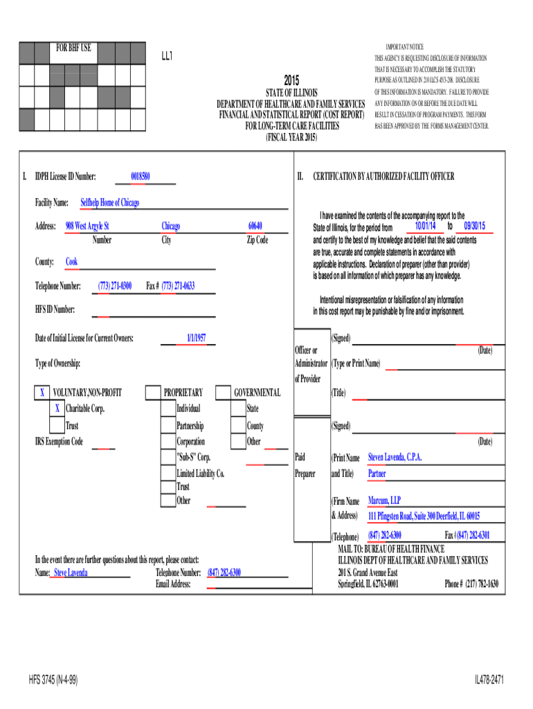 FINANCIAL AND STATISTICAL REPORT (COST REPORT)