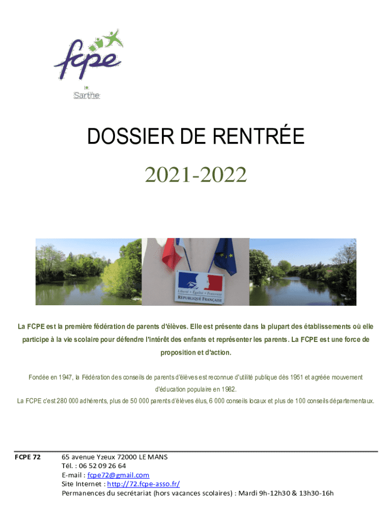 DOSSIER DE RENTRE 20212022La FCPE est la premire fdration de parents d\'lves. Elle est prsente dans la plupart des tablissements o elle participe la vie scolaire pour dfendre l\'intrt des enfants