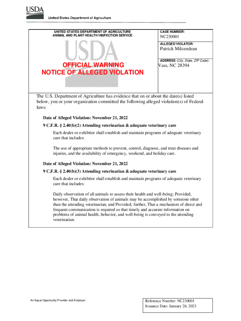 ANIMAL AND PLANT HEALTH INSPECTION SERVICE CASE NUMBER:NC230001