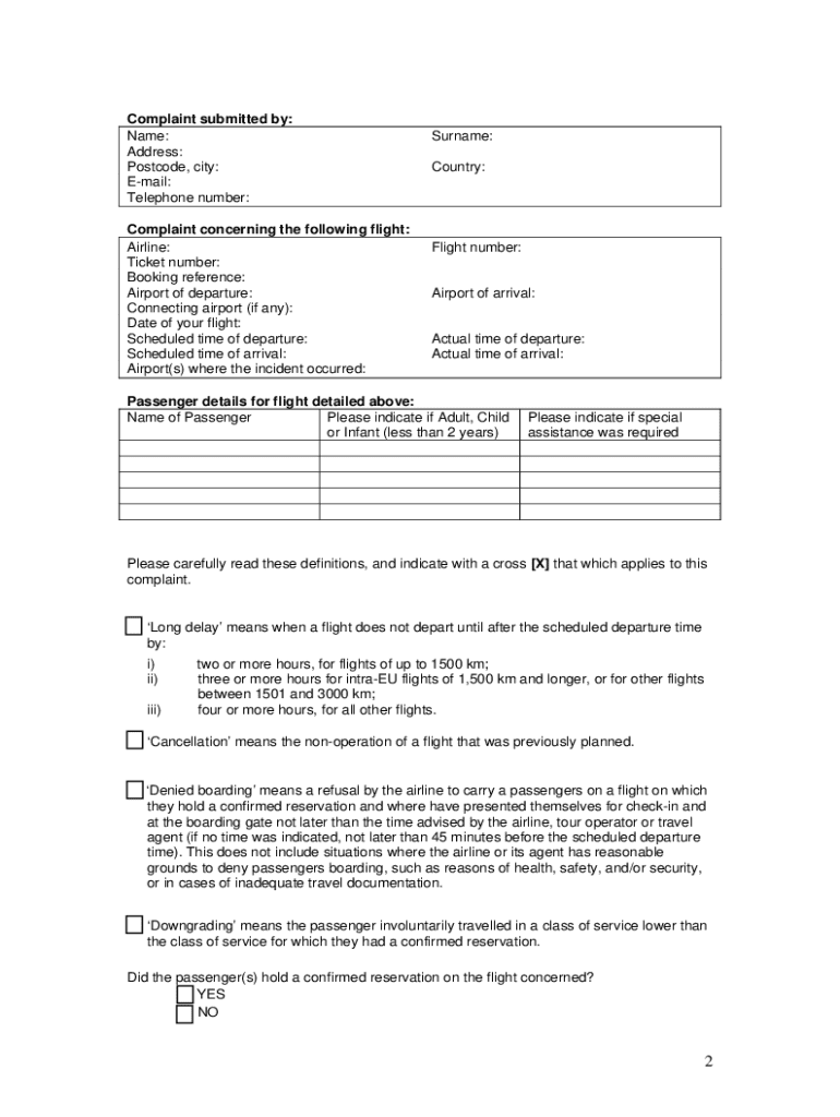 Passenger rights in case of denied boarding, downgrading, cancellation or long delay of their flight under Regulation (EC) 261/2004, of the European Parliament and of the Council of 11 February 2004.INSTRUCTIONS