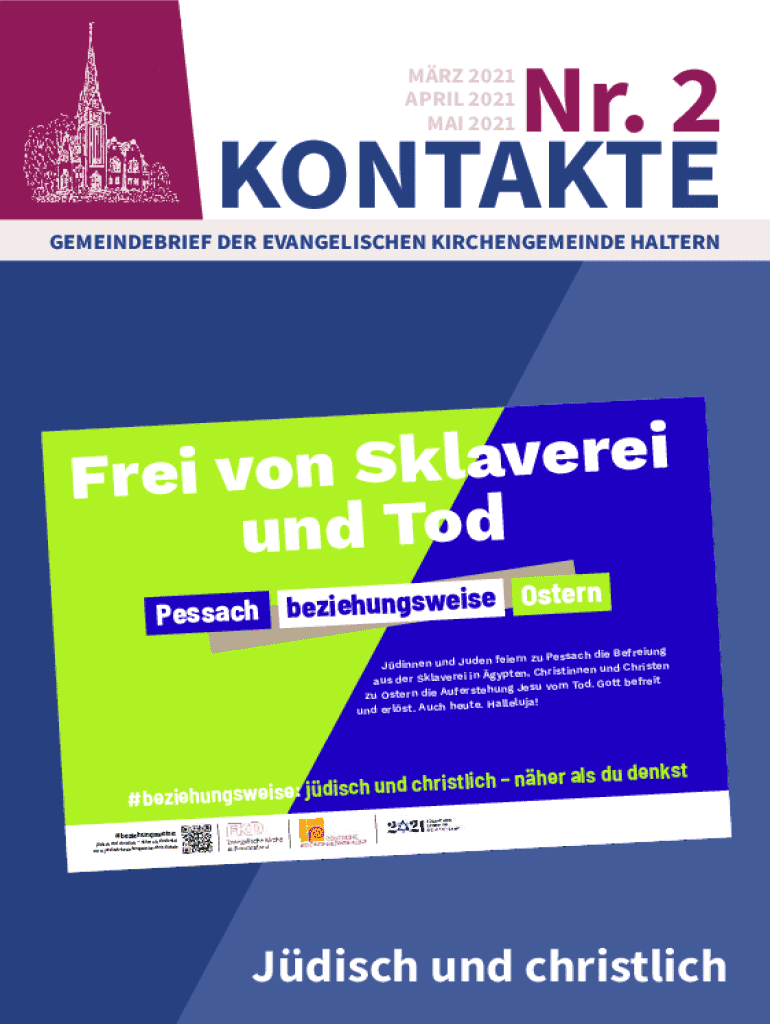 MRZ 2021 APRIL 2021 MAI 2021Nr. 2KONTAKTEGEMEINDEBRIEF DER EVANGELISCHEN KIRCHENGEMEINDE HALTERNi e r e v a l k S n o v i e Fr und Tod eise Ostern Pessach beziehungswh die Befreiung en feiern zu Pessac
