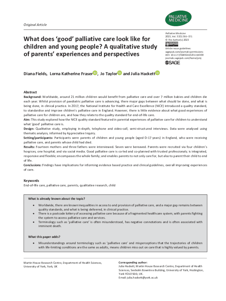 Get the free (PDF) What does 'good' palliative care look like for children ...