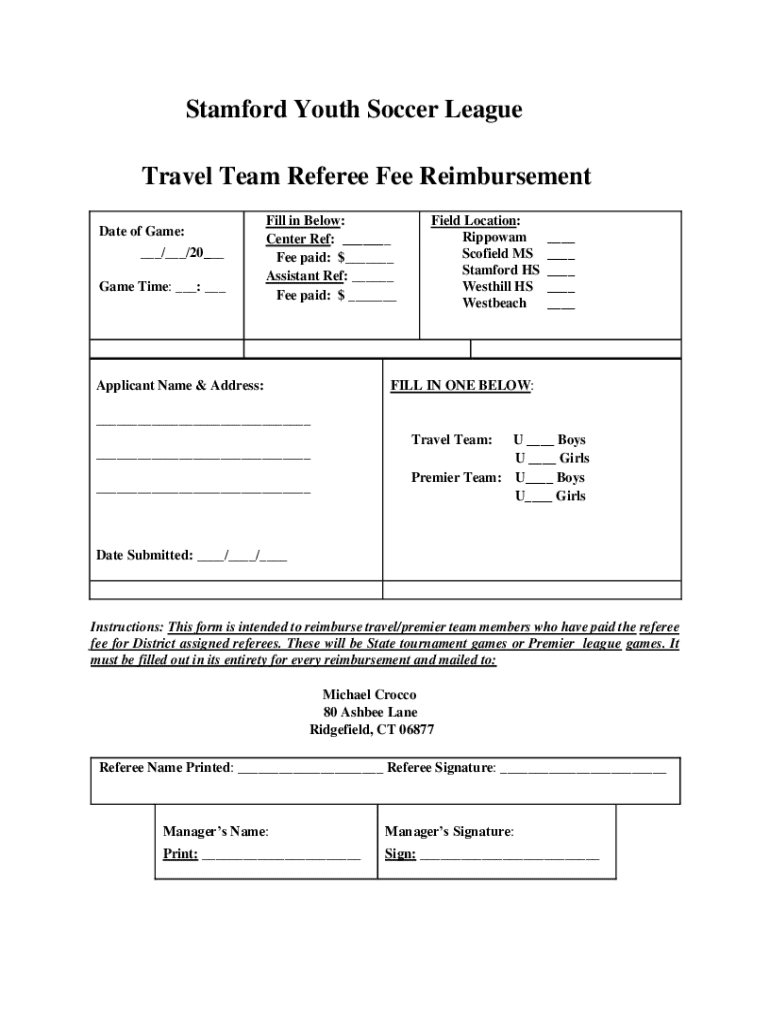Get the free Travel Team Referee Fee Reimbursement