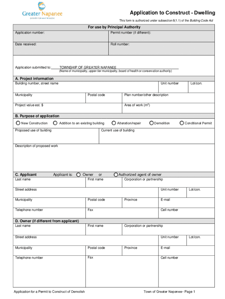 Development Services 99A Advance Ave, Napa nee, ON K7R 3Y5 TEL 6133543351 www.greaternapanee.comApplication for a Permit to Construct Dwelling Application Requirements To apply for a permit to construct