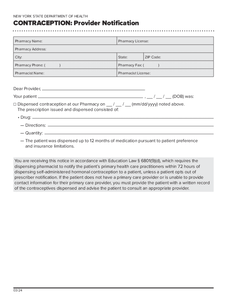 NEW YORK STATE DEPARTMENT OF HEALTHCONTRACEPTION: Provider Notification