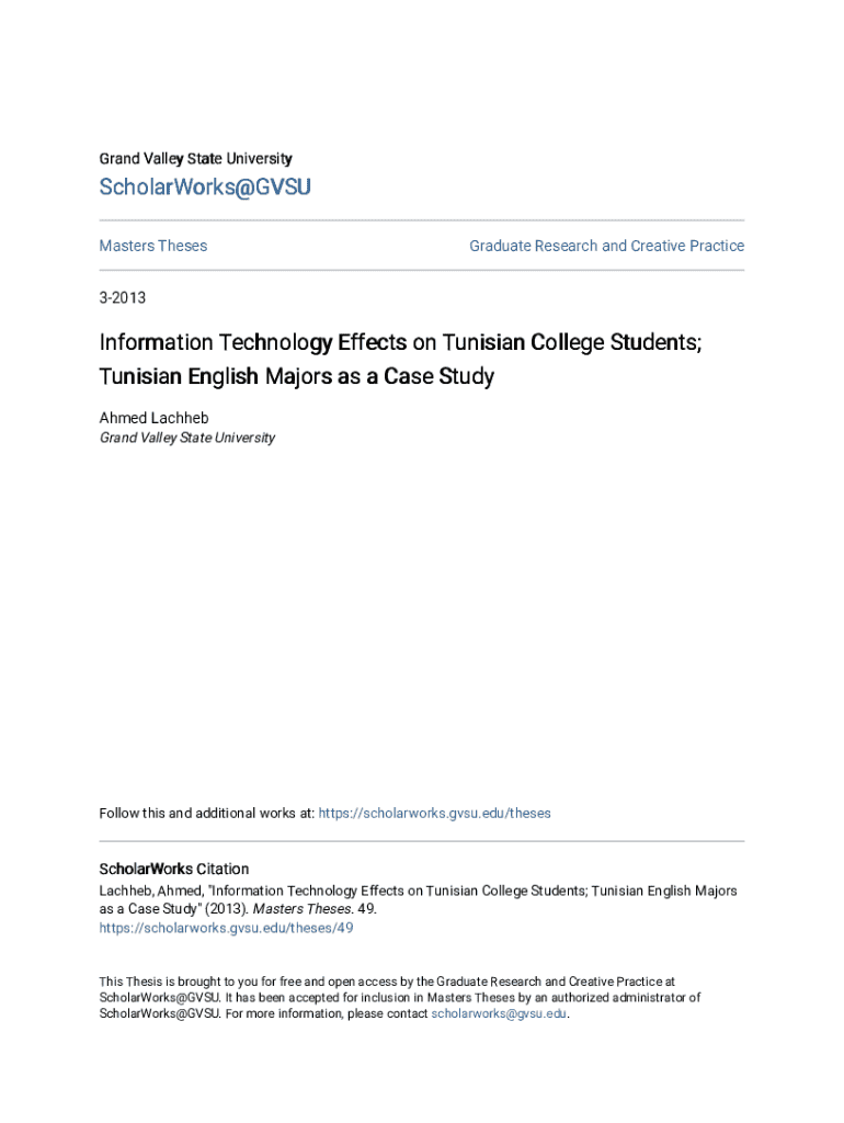 Grand Valley State UniversityScholarWorks@GVSU Masters ThesesGraduate Research and Creative Practice32013Information Technology Effects on Tunisian College Students; Tunisian English Majors as a Case
