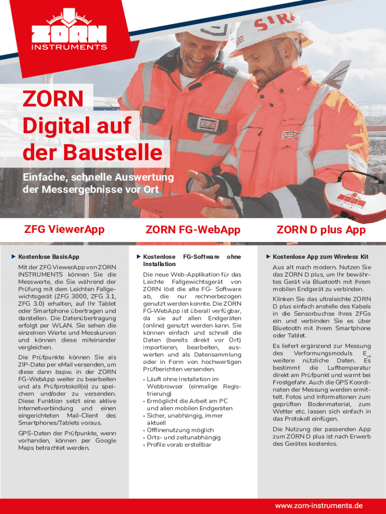 ZORN Digital auf der Baustelle Einfache, schnelle Auswertung der Messergebnisse vor OrtZFG ViewerApp Kostenlose BasisApp Mit der ZFG ViewerApp von ZORN INSTRUMENTS knnen Sie die Messwerte, die Sie