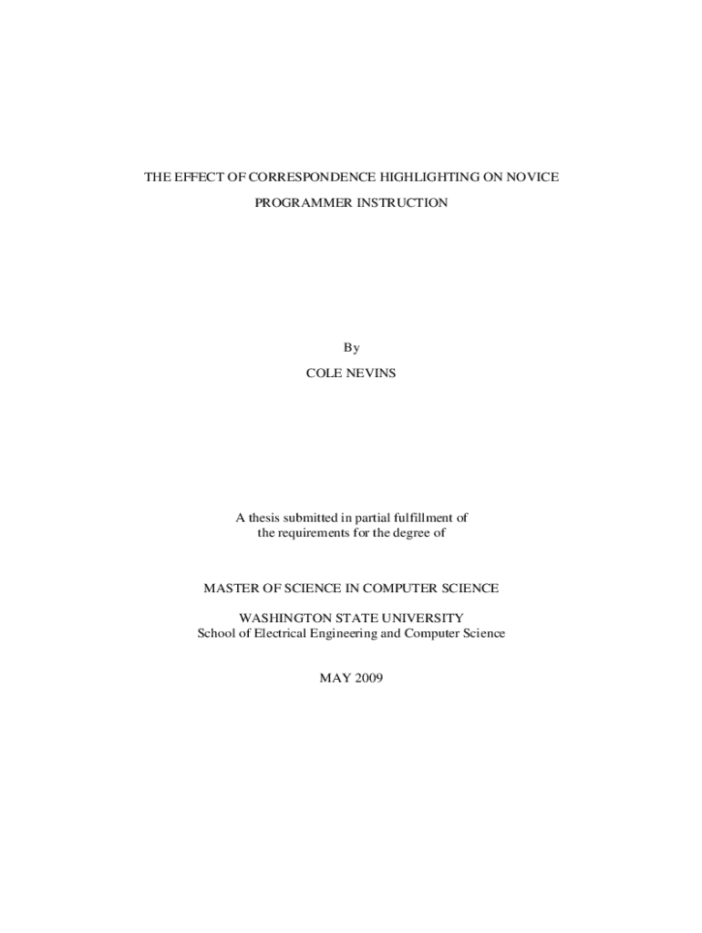 THE EFFECT OF CORRESPONDENCE HIGHLIGHTING ON NOVICE