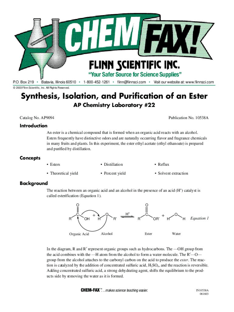Your Safer Source for Science Supplies P.O. Box 219 Batavia, Illinois 60510 18004521261 flinn@flinnsci.com Visit our website at: www.flinnsci.com 2003 Flinn Scientific, Inc. All Rights Reserved.Synthesis,