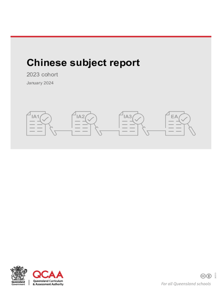 Chinese subject report 2023 cohort240019January 2024 State of Queensland (QCAA) 2024 Licence: https://creativecommons.org/licenses/by/4.0 | Copyright notice: www.qcaa.qld.edu.au/copyright lists the