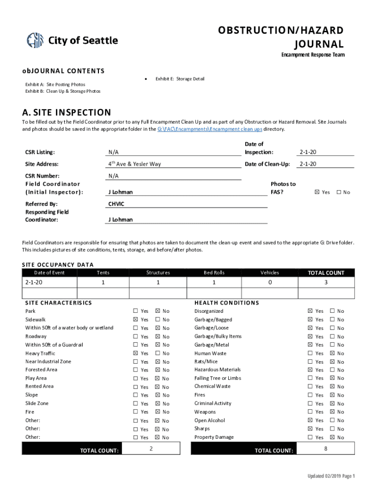 Encampment Response TeamobJOURNAL CONTENTSExhibit E: Storage DetailExhibit A: Site Posting Photos