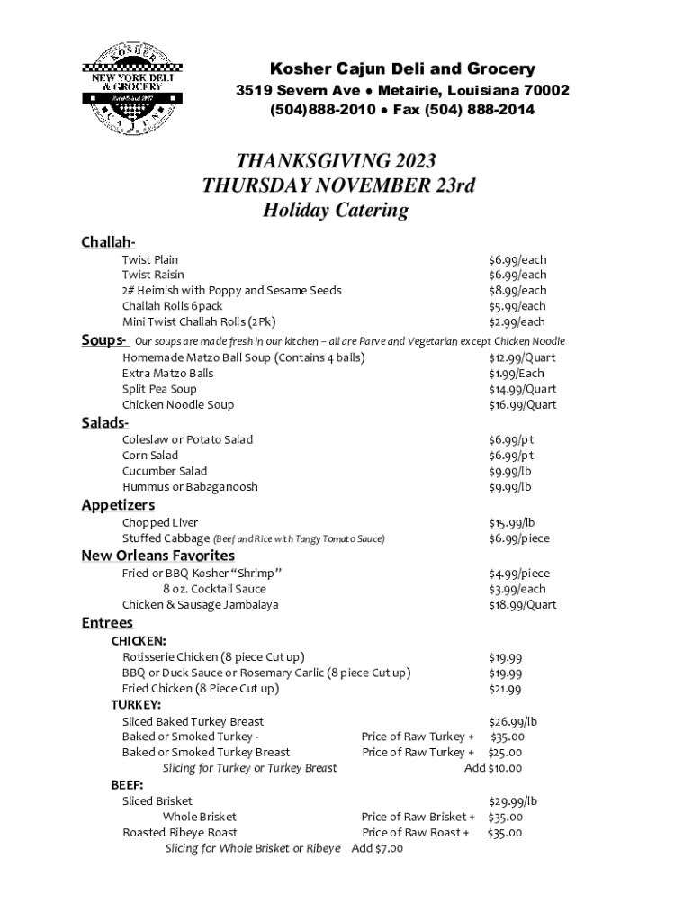 (504)8882010 Fax (504) 8882014THANKSGIVING 2023