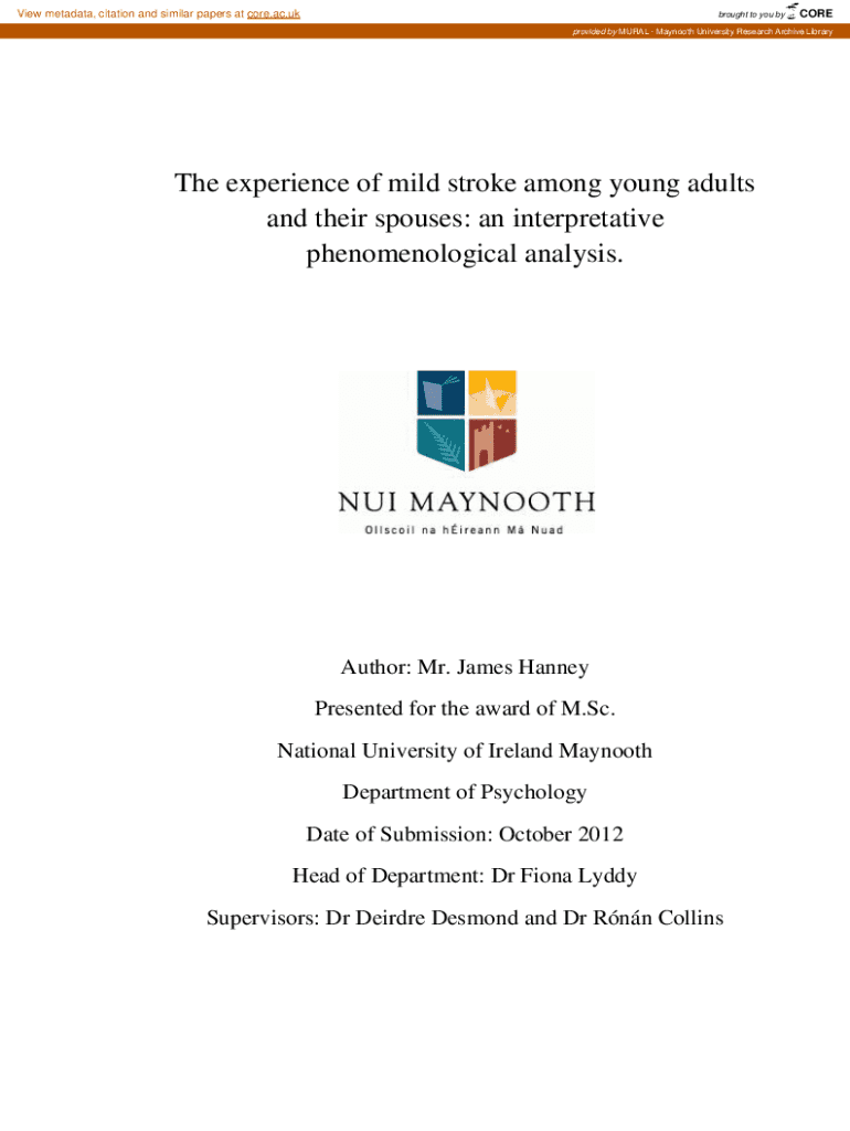 View metadata, citation and similar papers at core.ac.brought to you byCOREprovided by MURAL Mammoth University Research Archive Library experience of mild stroke among young adults