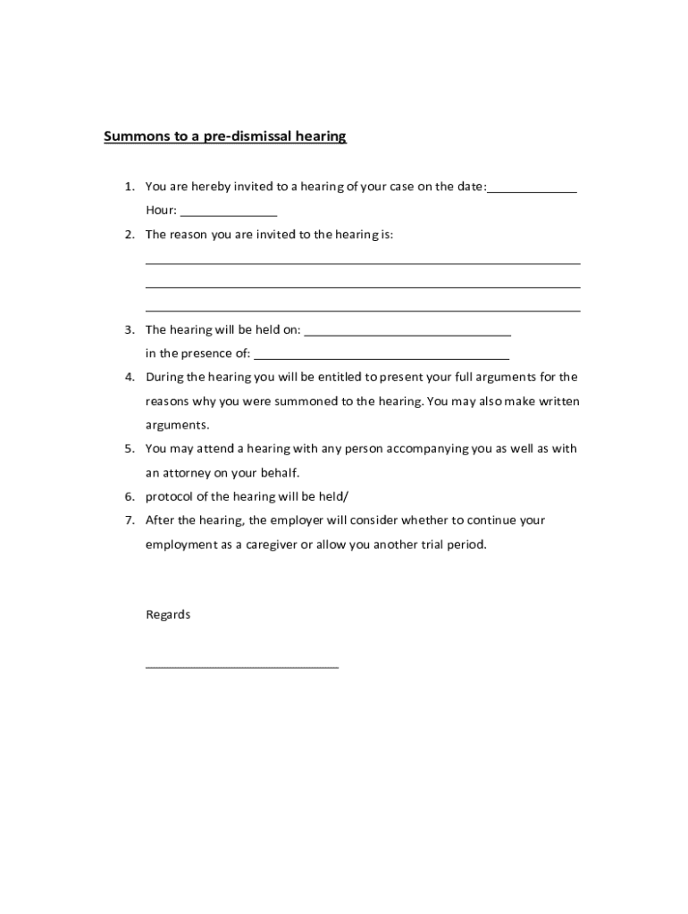 Summons to a dismissal hearing