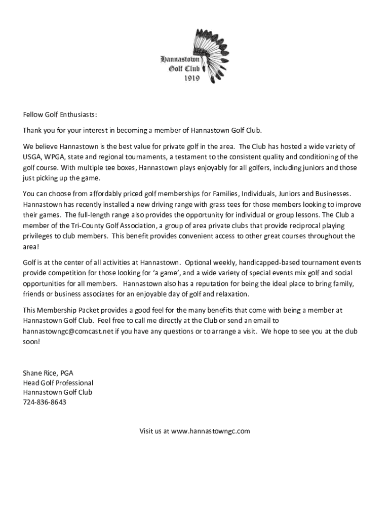 Edit your hannastown golf club brings form online
