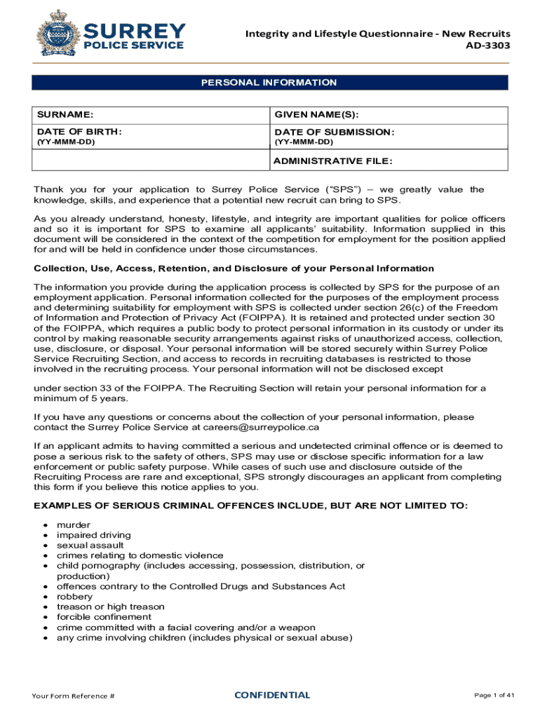 Get the free Integrity and Lifestyle Questionnaire - New Recruits