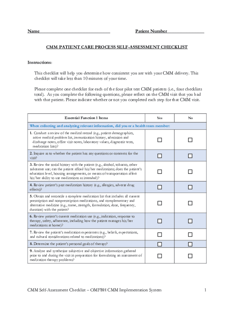 Name ___Patient Number______CMM PATIENT CARE PROCESS REASSESSMENT CHECKLIST Instructions: This checklist will help you determine how consistent you are with your CMM delivery. This checklist will