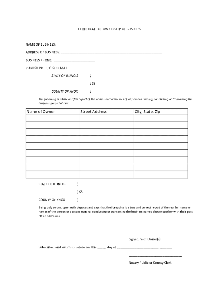 CERTIFICATE OF OWNERSHIP OF BUSINESSMAN OF BUSINESS: ___