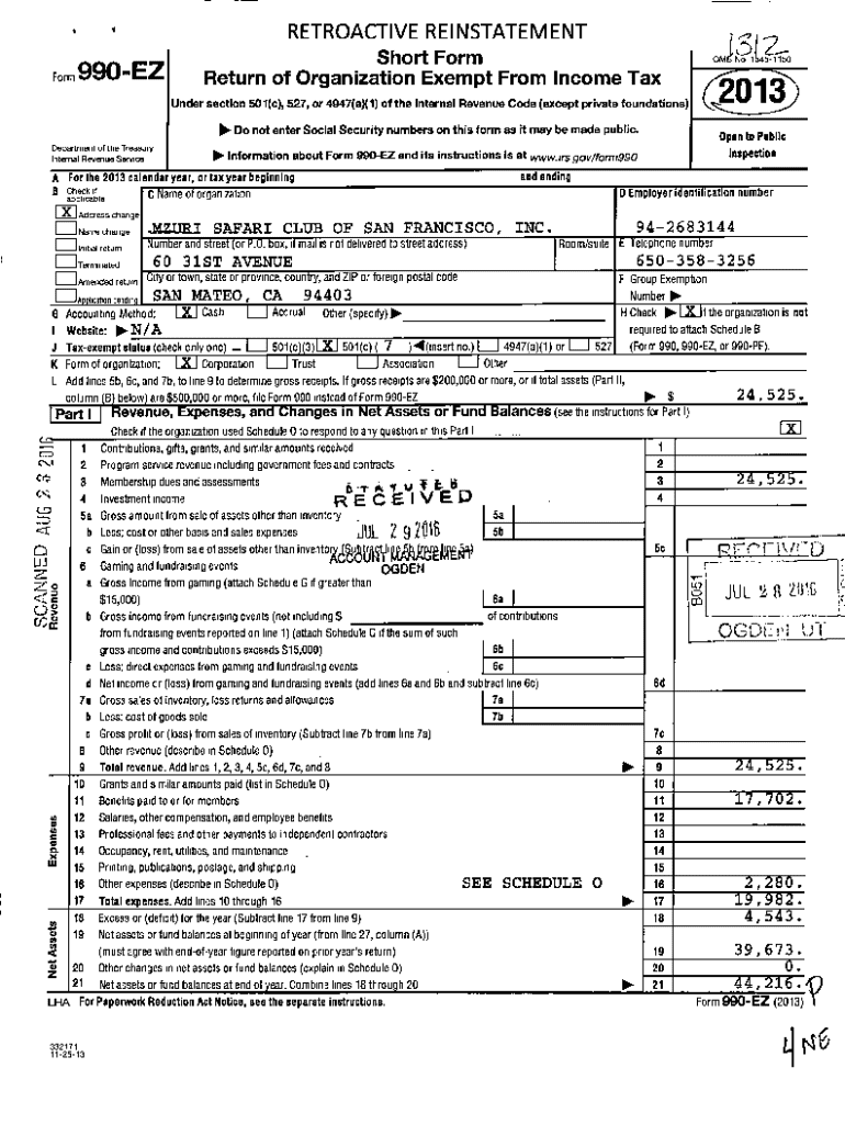 RETROACTIVE REINSTATEMENT4Form 990EZIShort Form Return of Organization Exempt From Income TaxOMEN545115013Under section 501(c), 527, or 4947(ax1) of the Internal Revenue Code (except private foundations)