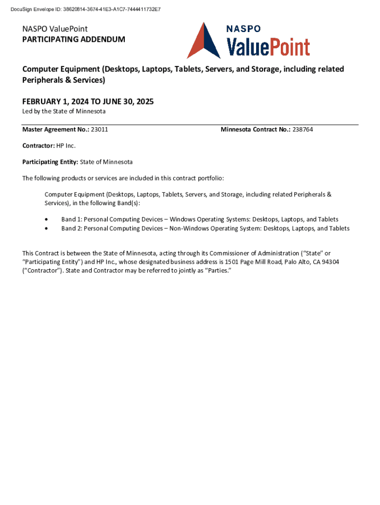 DocuSign Envelope ID: 38620814367441E3A1C77444411732E7NASPO ValuePoint PARTICIPATING ADDENDUM Computer Equipment (Desktops, Laptops, Tablets, Servers, and Storage, including related Peripherals &
