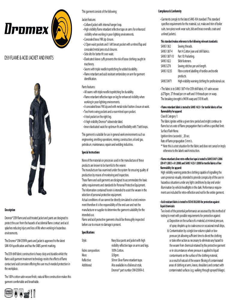 Get the free Technical Datasheet DW D59 FLAME & ACID SUIT