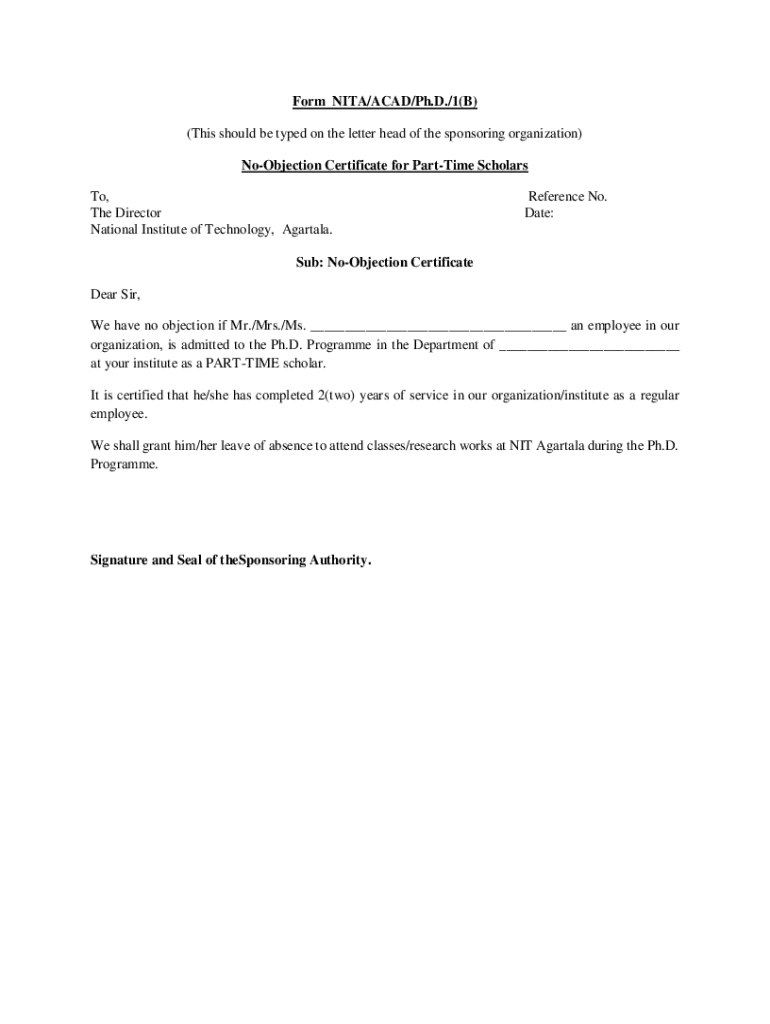 Get the free Sponsorship (Deputation) Certificate / No objection certificate