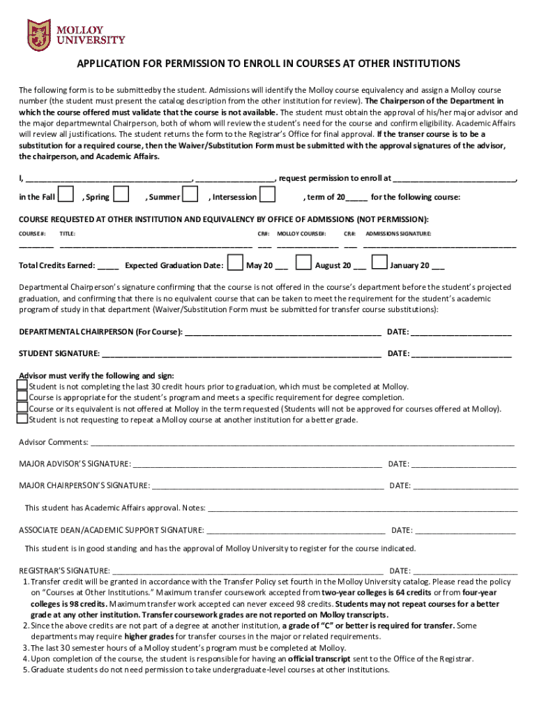 Get the free APPLICATION FOR PERMISSION TO ENROLL IN COURSES AT ...