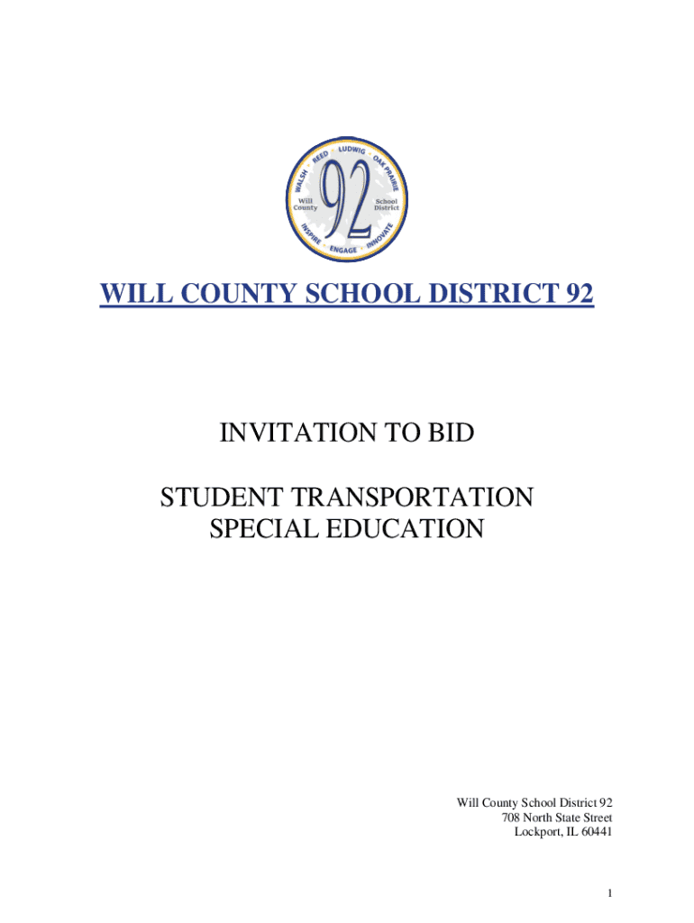 WILL COUNTY SCHOOL DISTRICT 92INVITATION TO BID