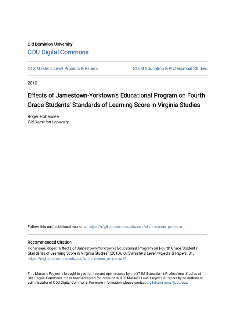 Get the free Effects of Jamestown-Yorktown's Educational Program on Fourth ...