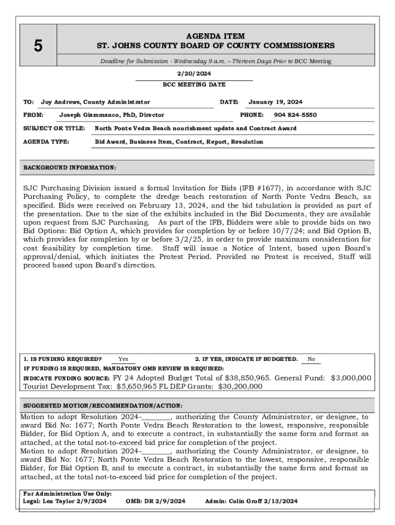 ST. JOHNS COUNTY BOARD OF COUNTY COMMISSIONERS5Deadline for Submission Wednesday 9 a.m. Thirteen Days Prior to BCC Meeting