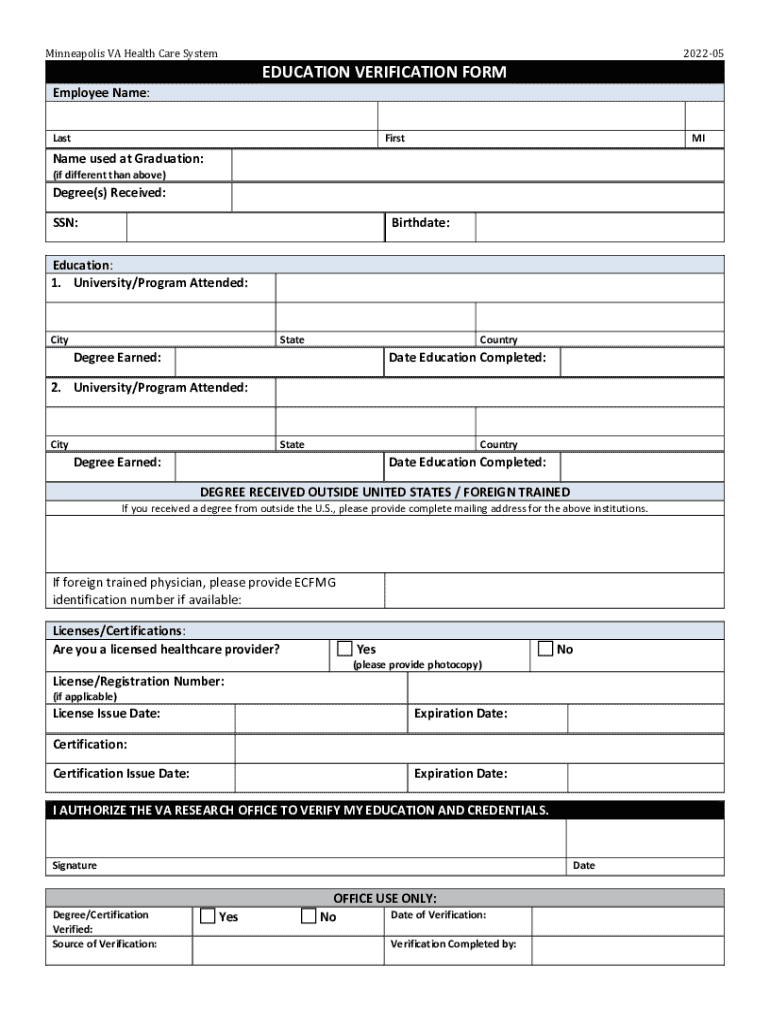 Minneapolis VA Health Care System202205EDUCATION VERIFICATION FORMEmployee Name: