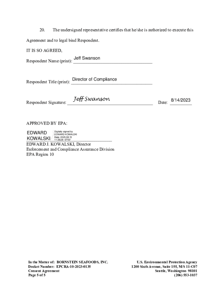 Docket No. EPCRA1020230135FILED: August 16, 2023, at 9:22 A.M. Regional Hearing Clerk, U.S. EPA Region 10BEFORE THE