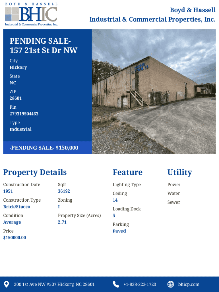 Industrial & Commercial Properties, Inc. PENDING SALE157 21st St Dr NW