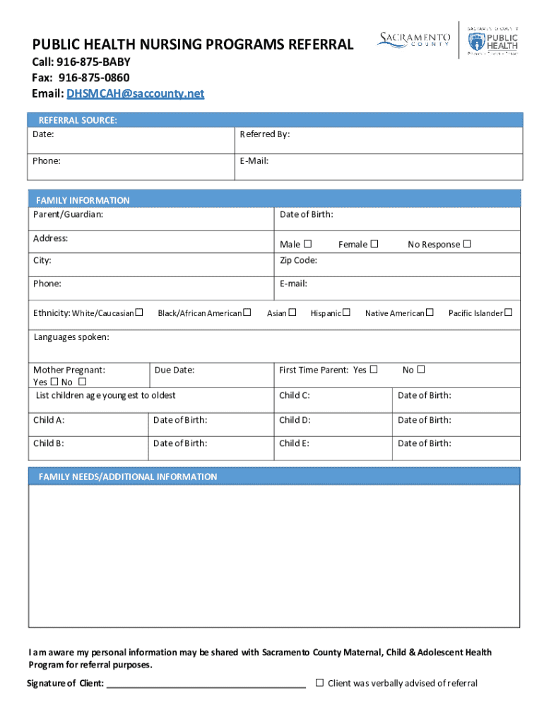 Get the free Public Health Nursing Services - dhs.saccounty.net