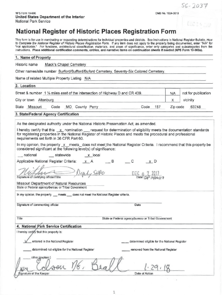 0 MB No. 10240018NPS Form 10900United States Department of the Interior