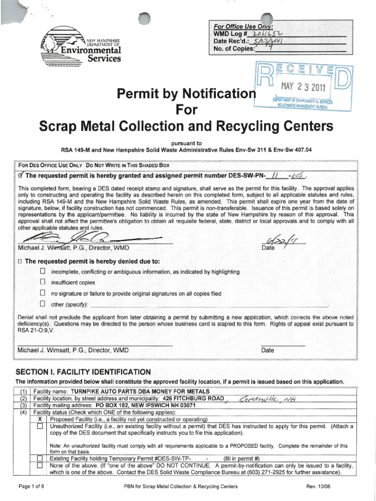 Get the free Permit by Notificatio For Scrap Metal Collection and Recycling Centers