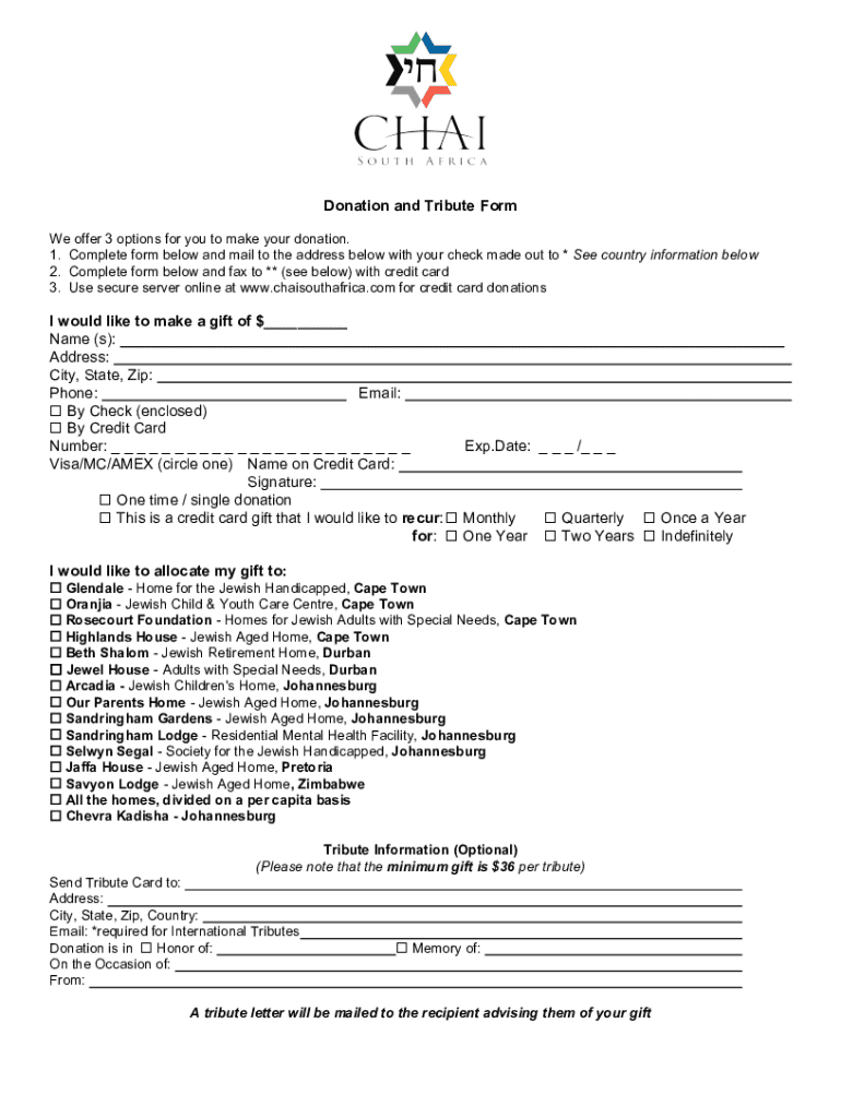 Fill out your donation and tribute form online with pdfFiller!