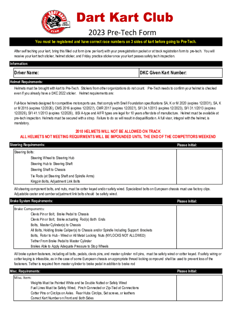 You must be registered and have correct race numbers on 3 sides of kart before going to Protect.