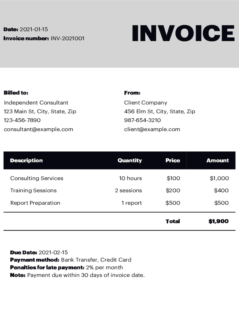 An independent consultant invoice serves as a formal request for payment from clients, outlining the services rendered. Understanding the purpose and structure of an invoice is critical for ensuring accurate transactions and maintaining professionalism.