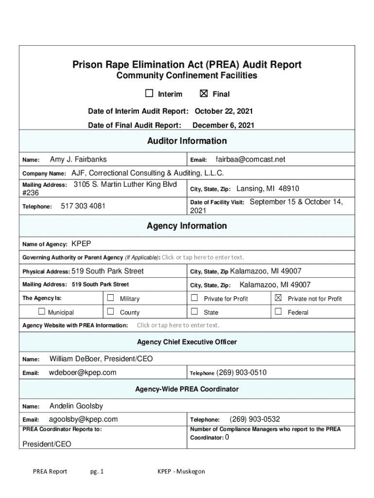Date of Final Audit Report:December 6, 2021Auditor Information