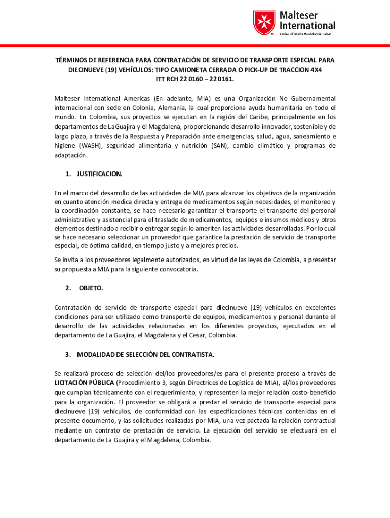 TR MINOS DE REFERENCE PARA CONTRATACIN DE SERVICE DE TRANSPORT ESPECIAL PARA