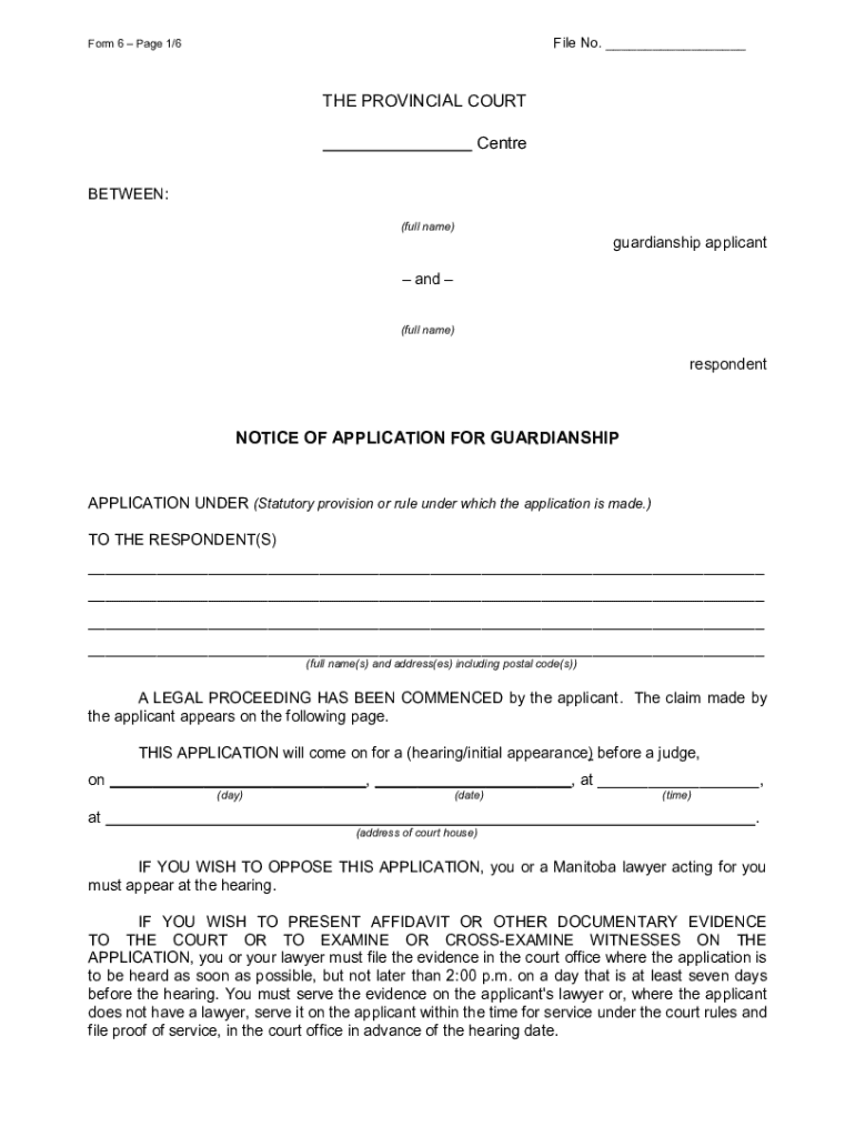 File No. ___Form 6-Page 1/6THE PROVINCIAL COURT