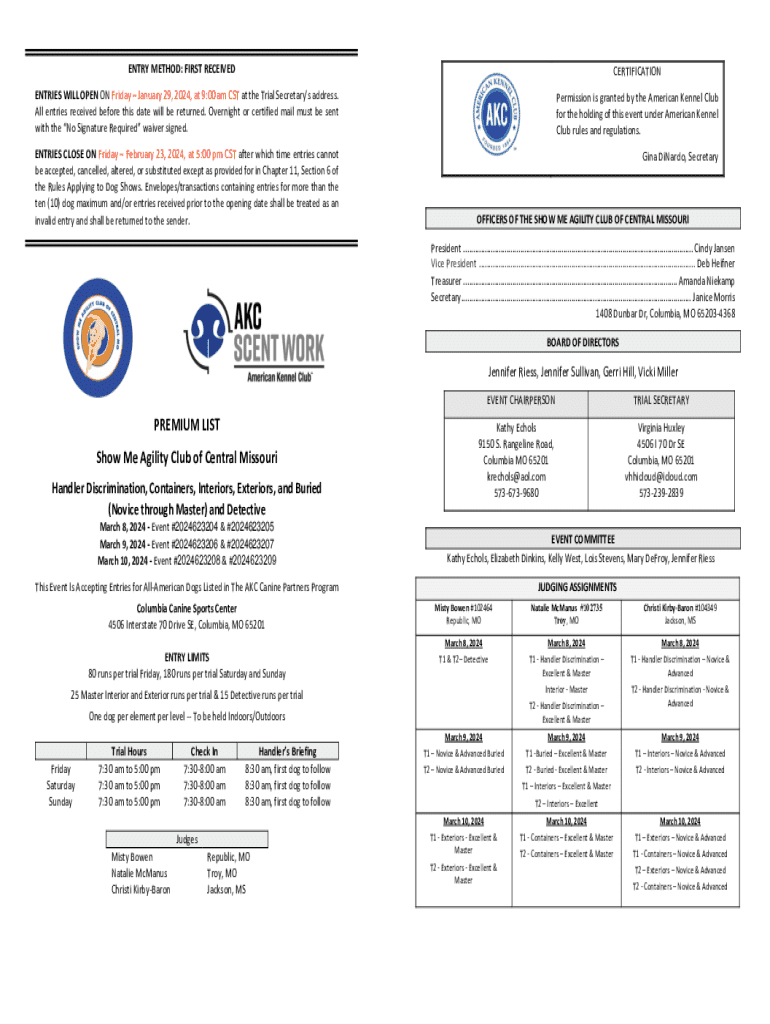 ENTRY METHOD: FIRST RECEIVEDCERTIFICATIONENTRIES WILL OPEN ON Friday, January 29, 2024, at 9:00 am CST at the Trial Secretary's address.
