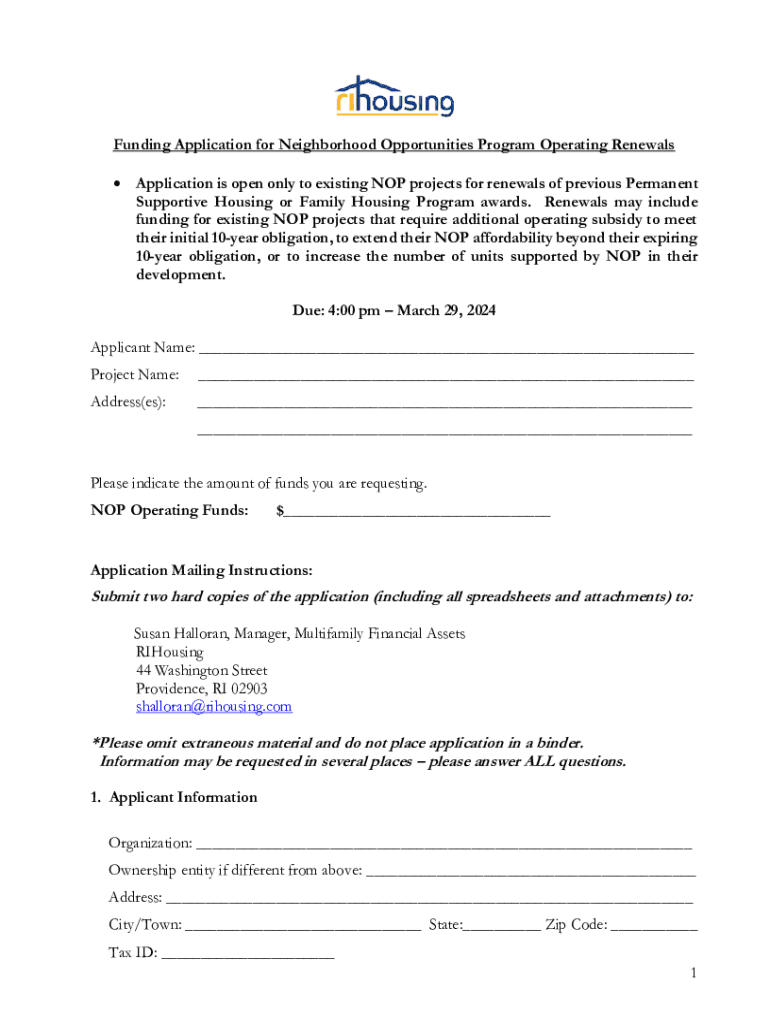 Funding Application for Neighborhood Opportunities Program Operating Renewals