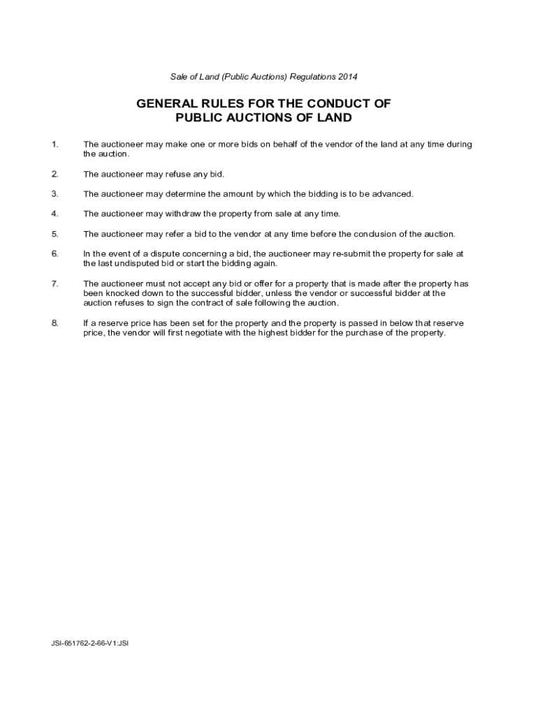 Sale of Land (Public Auctions) Regulations 2014GENERAL RULES FOR THE CONDUCT OF