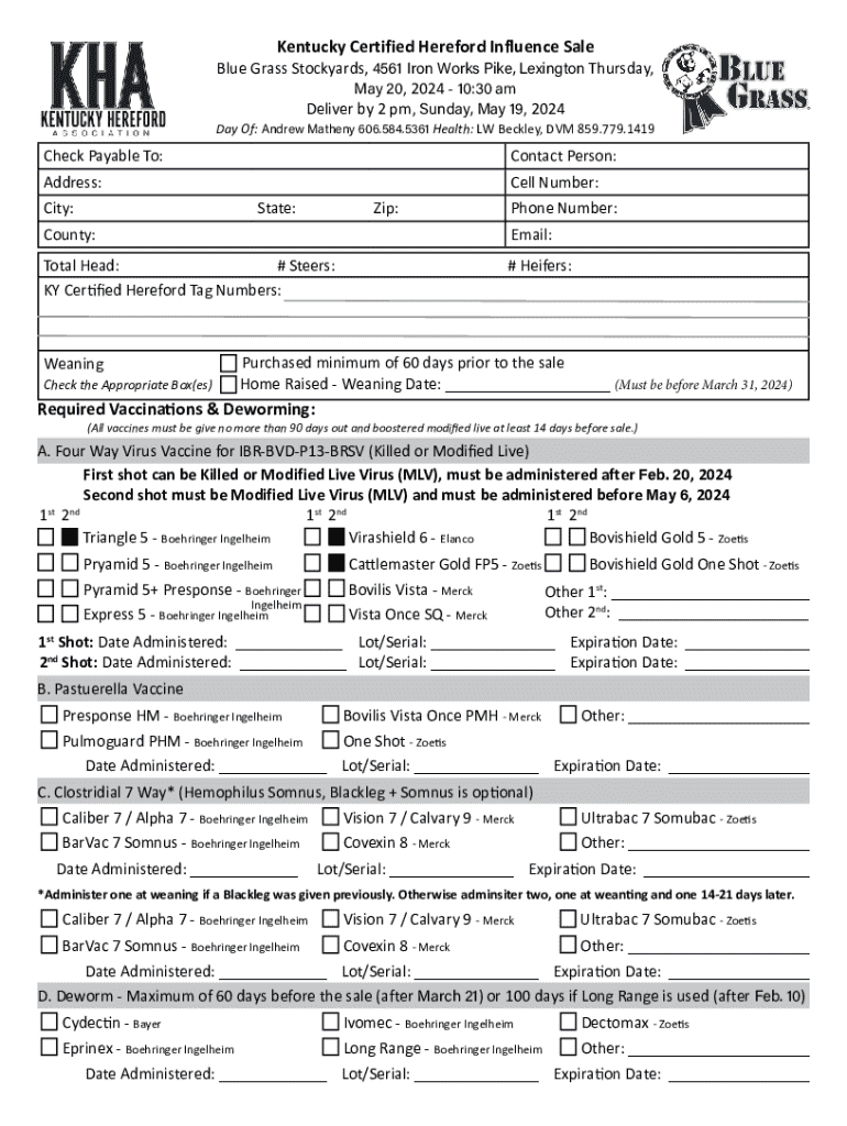 Get the free Kentucky Certified Hereford Influence Sale Required Vaccinations ...