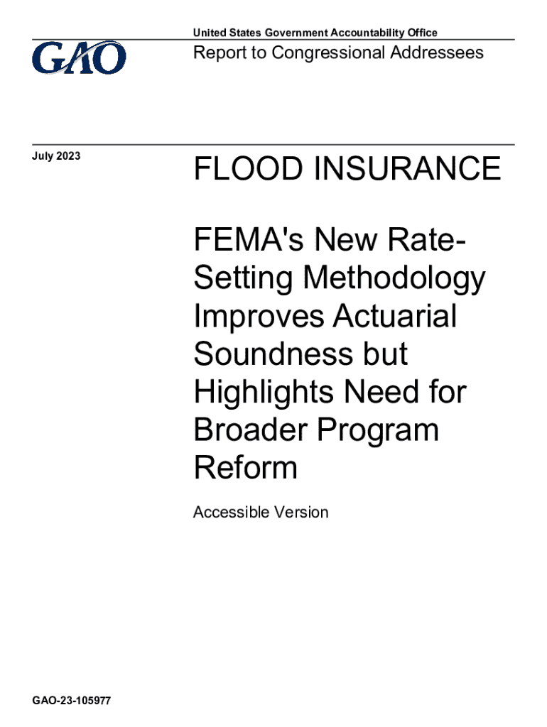 United States Government Accountability OfficeReporttoCongressionalAddresseesJuly 2023FLOODINSURANCE