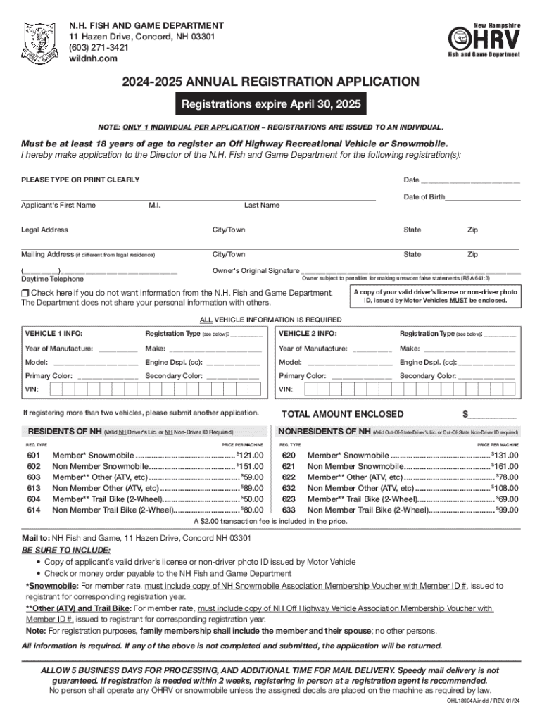 wild.come HampshireFish and Game Department20242025 ANNUAL REGISTRATION APPLICATION