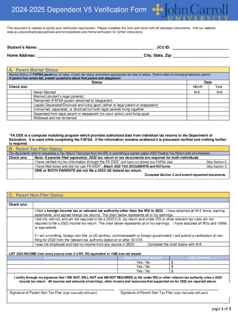 20242025 Dependent V5 Verification Form