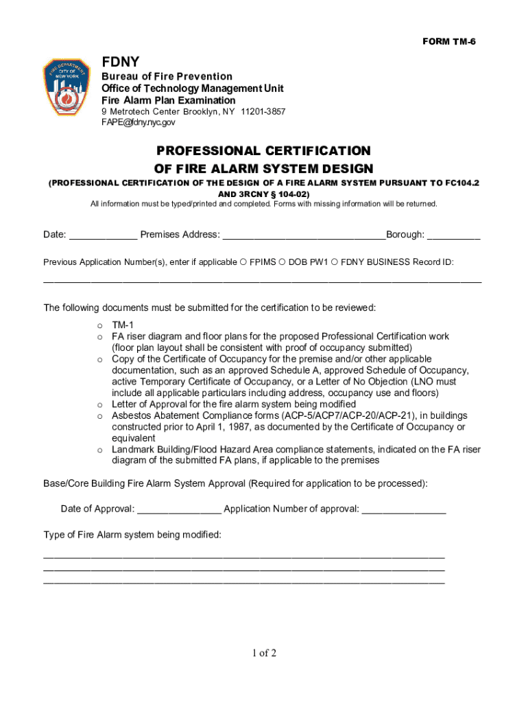 FORM TM6FDNYBureau of Fire Prevention